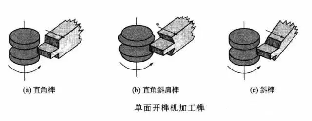 在開(kāi)榫機(jī)上完成榫加工單面開(kāi)榫機(jī)可以加工直角榫、直角斜肩榫、斜榫,如圖所示: