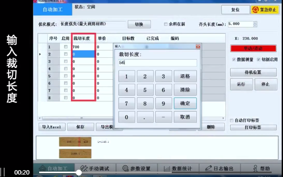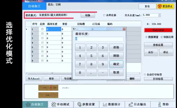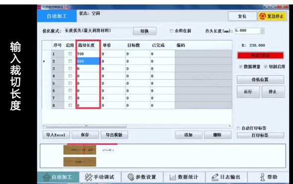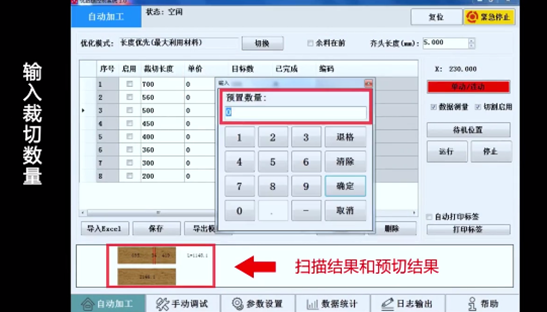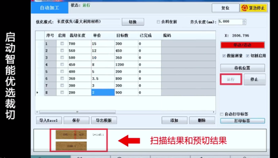3、固定裁切(按材料清單順序依次鋸切,對于無缺陷的材料可選用此模式)