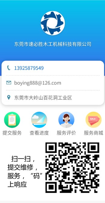 當(dāng)你使用速必勝機(jī)械過程中,若出現(xiàn)問題了,請通過掃碼即可實(shí)現(xiàn)快速報(bào)修,達(dá)到事半功倍的效果。