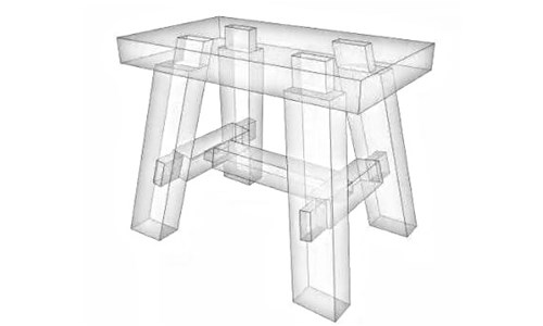 “四腿八”的側(cè)腳表明了家具與建筑的淵源,即在結(jié)構(gòu)上,吸取了大木梁架的造法。大木梁架的柱子多用圓材,直落到柱頂石上,為了穩(wěn)定,柱子多帶側(cè)腳,下舒上斂,向內(nèi)傾仄,并用橫材額枋等連接。早年曾追隨梁思成先生參加營(yíng)造法社的王世襄先生,在其研究中將保留了大木梁架的基本造型特征的,以圓材、直足、直棖和“四腿八”為基本形式的,歸類(lèi)為明式無(wú)束腰家具。