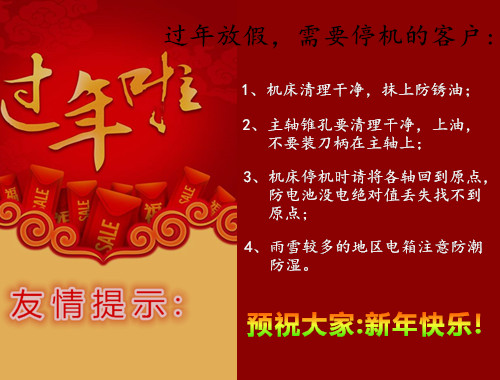 過年放假即將來臨之際,使用數(shù)控設(shè)備的朋友、需要停機(jī)的客戶: